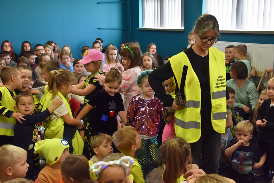 Bezpieczeństwo na drodze to niezwykle istotny problem, dotyczy każdego człowieka bez względu na wiek i sposób poruszania się po niej. O potrzebie noszenia odblasków w inspirujący sposób przypomniały nam najmłodsze dzieci z naszej szkoły z oddziałów przedszkolnych, w ramach Ogólnopolskiego Konkursu Policyjnego ODBLASKOWA SZKOŁA 2025. W rytm piosenki Od obuwia aż do głowy cały jestem odblaskowy, wśród gromkich braw, przedszkolaki zaprezentowały swoje odblaskowe stroje przed zaproszonymi gośćmi, uczniami, rodzicami i okolicznymi mieszkańcami. Wszystko zgodnie z przesłaniem, kto nosi odblaski zasługuje na oklaski. Po takim pokazie mody, nikt nie ma wątpi, że odblaski są zawsze trendy i na czasie.