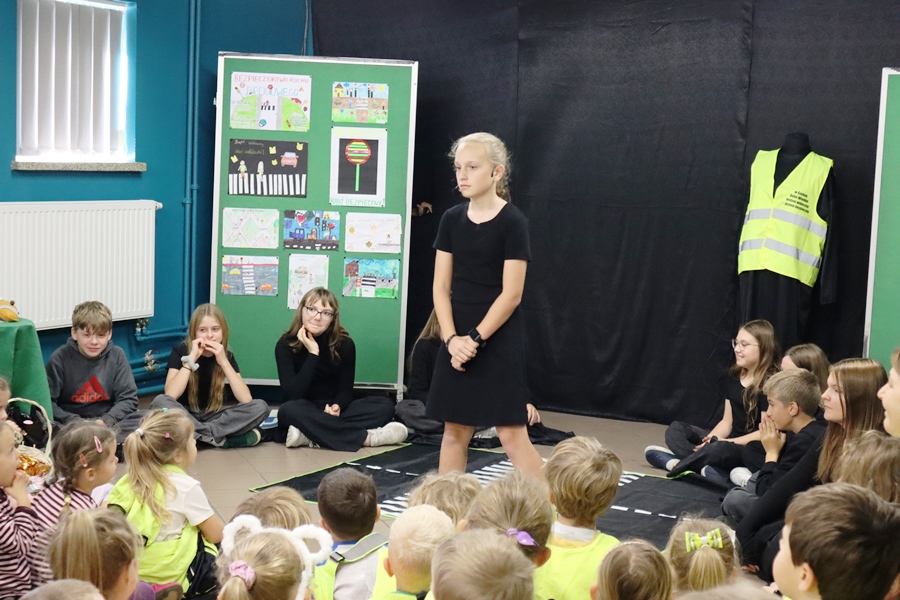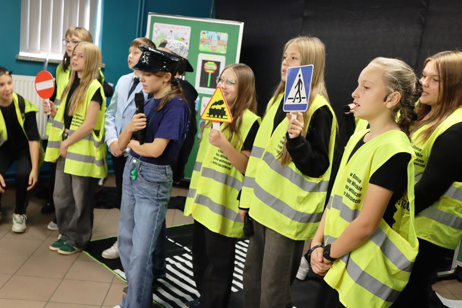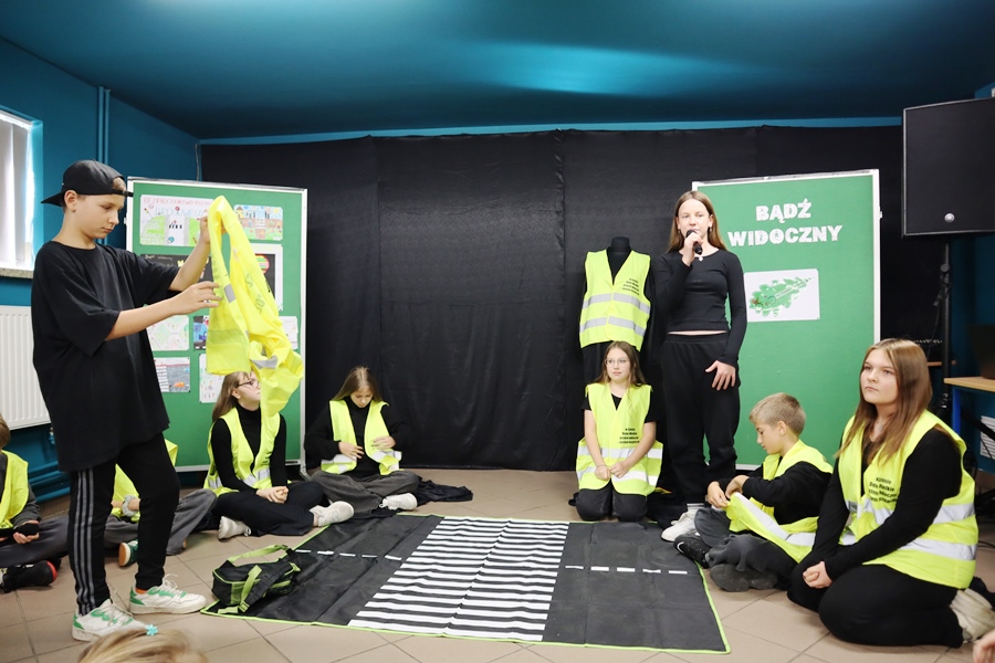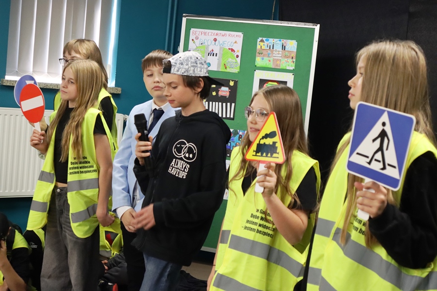 4 listopada 2025 r. uczniowie klasy VI wraz z wychowawczynią p.Anetą Wawer przygotowali performance BĄDŹ WIDOCZNY! na temat bezpieczeństwa na drodze, w ramach Ogólnopolskiego Konkursu Policyjnego ODBLASKOWA SZKOŁA 2025. Nasz bohater Gapcio posłuchał kilku rad, jak należy poruszać się po drodze, po co są znaki drogowe i sygnalizacja świetlna, a od policjantki otrzymał kamizelkę odblaskową, aby go chroniła po zmierzchu. Na widowni zasiedli goście: asp. Paweł Pietras z Komendy Policji w Halinowie, p.Paulina Kulik Przewodnicząca Rady Rodziców i Koła Gospodyń Wiejskich TABOR w Cygance, rodzice, kadra szkoły i uczniowie. Nasi Goście przekazali wszystkim odblaski oraz wręczyli pamiątkowe dyplomy i nagrody uczestnikom szkolnego konkursu plastycznego oraz turnieju wiedzy o bezpieczeństwie w ruchu drogowym ufundowane przez Koło Gospodyń Wiejskich TABOR, za co bardzo dziękujemy. Aby zapadła w pamięć potrzeba noszenia odblasków wszyscy nauczyli się rymowanki: Na drodze, w polu, w lesie, w Cygance, czy w powiecie, uczeń z odblaskami chodzi i dobrze na tym wychodzi.