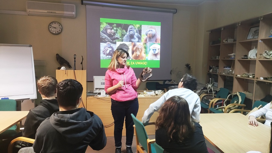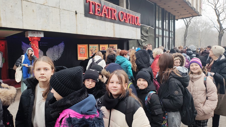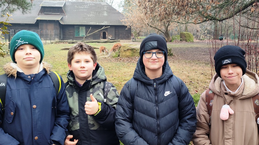 19 grudnia 2025 r. 30 uczniów z klas V, VII i VIII i 3 opiekunów uczestniczyło w przedsięwzięciu Ministerstwa Edukacji Narodowej Wyjście Z Klasą, którego celem jest wspieranie edukacji poprzez bezpośredni kontakt z kulturą i nauką poza murami szkoły. Program wycieczki był bogaty i różnorodny, łącząc elementy edukacji kulturalnej, humanistycznej, przyrodniczej oraz integracji uczniów. Pierwszym etapem wyjazdu była wizyta w Miejskim Ogrodzie Zoologicznym im. Antoniny i Jana Żabińskich, gdzie dzieci wzięły udział w warsztatach edukacyjnych Co nas dzieli, co nas łączy?, poświęconych małpom człekokształtnym. Zajęcia stanowiły cenne uzupełnienie treści z zakresu edukacji przyrodniczej i ekologicznej, realizowanych w szkole. Uczniowie poszerzyli swoją wiedzę na temat świata zwierząt, różnic i podobieństw między ludźmi a innymi naczelnymi oraz znaczenia ochrony przyrody. Następnie, uczniowie wraz z opiekunami obejrzeli spektakl Teatrze Capitol w Warszawie KONGO. Widowisko interaktywne ukazywało relacje rówieśnicze, zwracając uwagę na emocje i wyzwania z jakimi na co dzień mierzą się młodzi ludzie. Wydarzenie to było związane z realizacją treści z języka polskiego i muzyki. Uczniowie mogli lepiej zrozumieć różne formy kultury, inne niż tekst literacki, oraz zobaczyć, jak muzyka łączy się z teatrem. Ostatnim punktem wyjazdu był wspólny obiad, będący okazją do odpoczynku, rozmów i podsumowania wspólnych przeżyć. Inicjatywa Wyjście Z Klasą była doskonałą okazją do integracji uczniów, rozwijania ich zainteresowań oraz kontaktu z kulturą i nauką w rzeczywistym, a nie wirtualnym świecie.